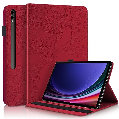 Succtopy Coque pour Samsung Galaxy Tab S10+ 2024 /S9+ Plus /S9 FE+ 12.4 Pouces 2023 Housse de Protection avec Porte-Pencil Étui à Rabat avec Support Fonction Galaxy Tab S10 Plus/S9+/S9 FE+ Rouge