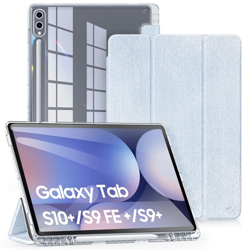 DUX DUCIS Coque Hybride pour Samsung Galaxy Tab S10+ Plus/S9 FE+ Plus/S9+ Plus 12,4 Pouces, Housse Fine à Dos Transparent avec Porte-Crayon, Fonction Veille/Réveil Automatique, Bleu Clair
