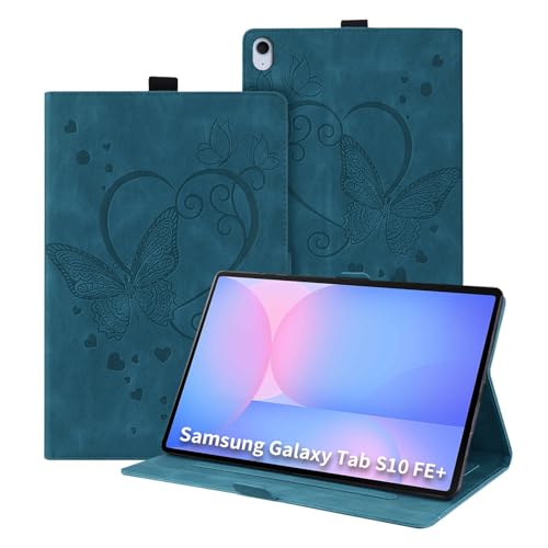 Auslbin Coque pour Samsung Galaxy Tab S10 FE Plus/S10 FE+ 13.1” 2025 Pouces Cuir en Relief Papillon Housse de Tablette avec Fonction de Support Flip Protecteur Anti-Chute Étui de Tab, Bleu