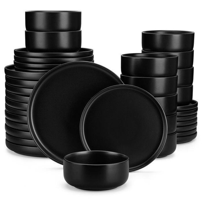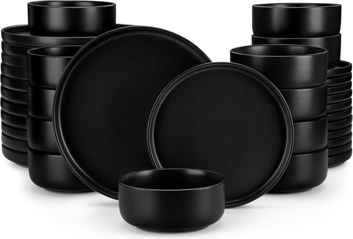 Service de table 12 personnes faïence noire mate 36pcs set de vaisselle