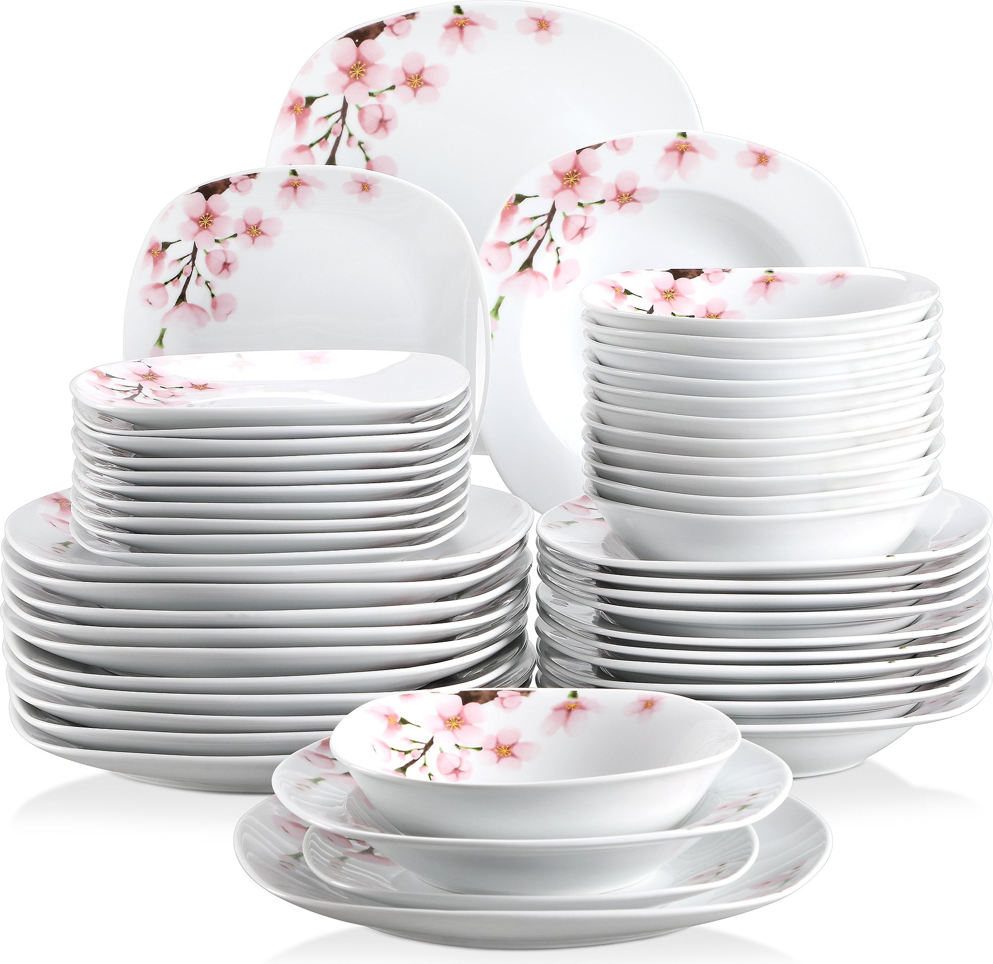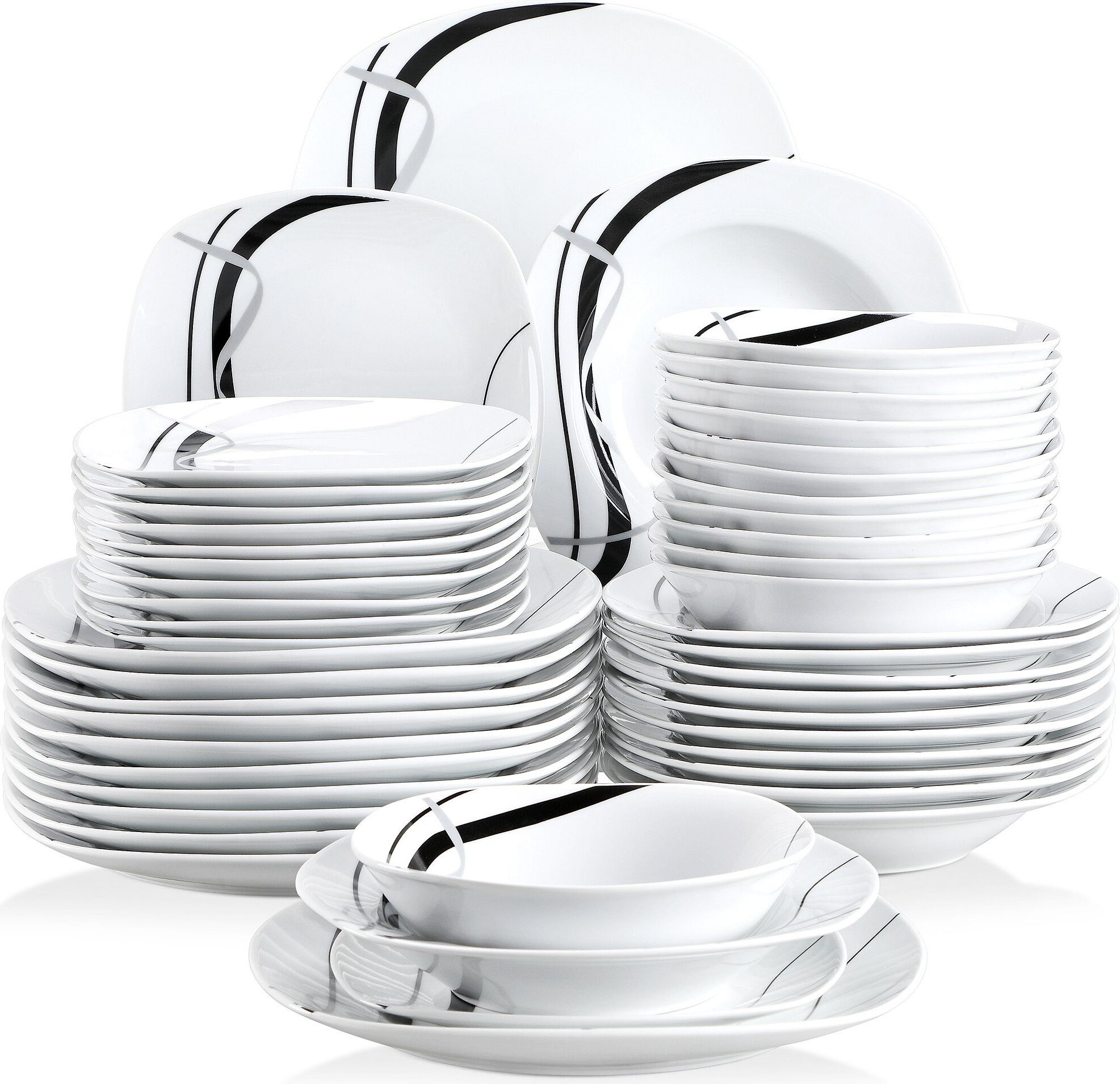 VEWEET Service de table 'Fiona' en porcelaine, set de vaisselle 48 pièces avec bols à céréales, assiettes à dessert, assiettes plates et assiettes à soupe, service de table pour 12 personnes