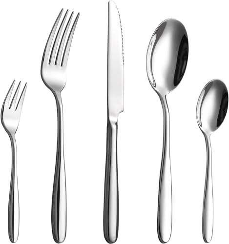 Bestdin couverts de table pour 12 personnes, 60 pièces en acier inoxydable avec couteau, fourchette, cuillère, couverts en acier inoxydable de qualité supérieure, passent au lave-vaisselle.…