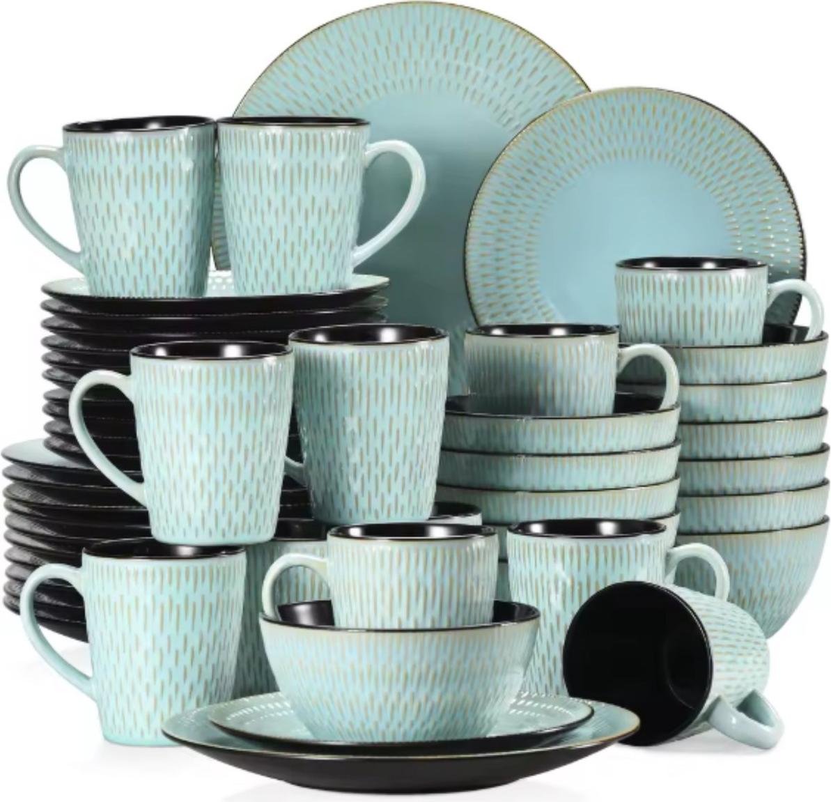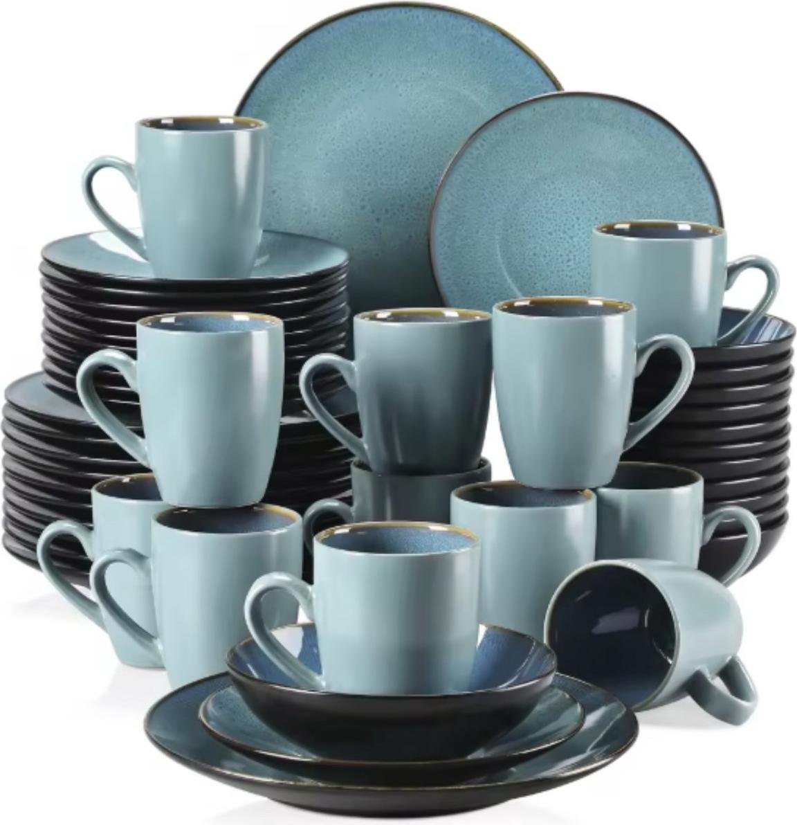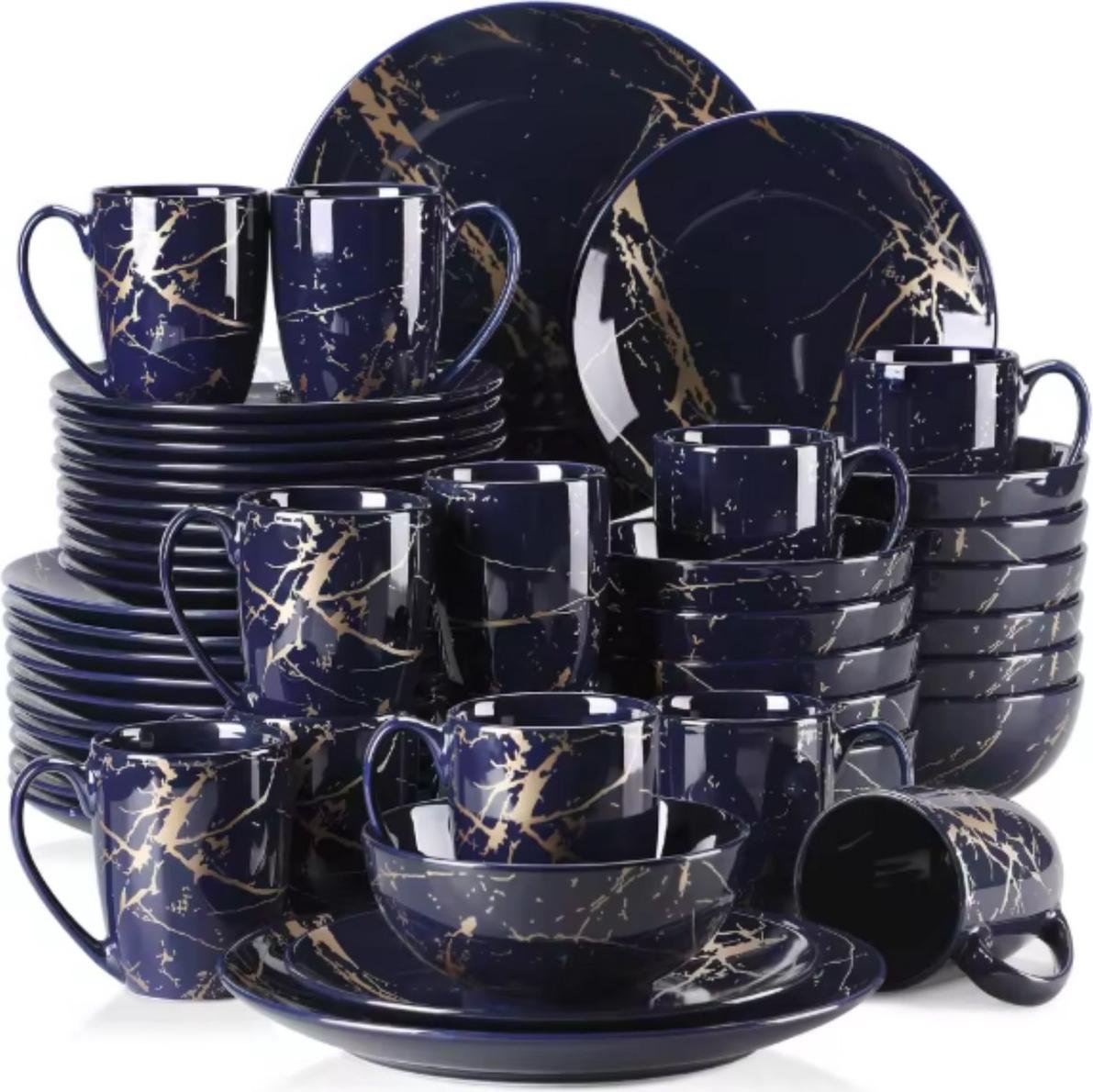 Empress Service - Service de table - 12 personnes - 48 pièces - Céramique - Bleu - Petites assiettes