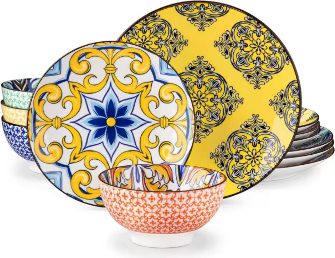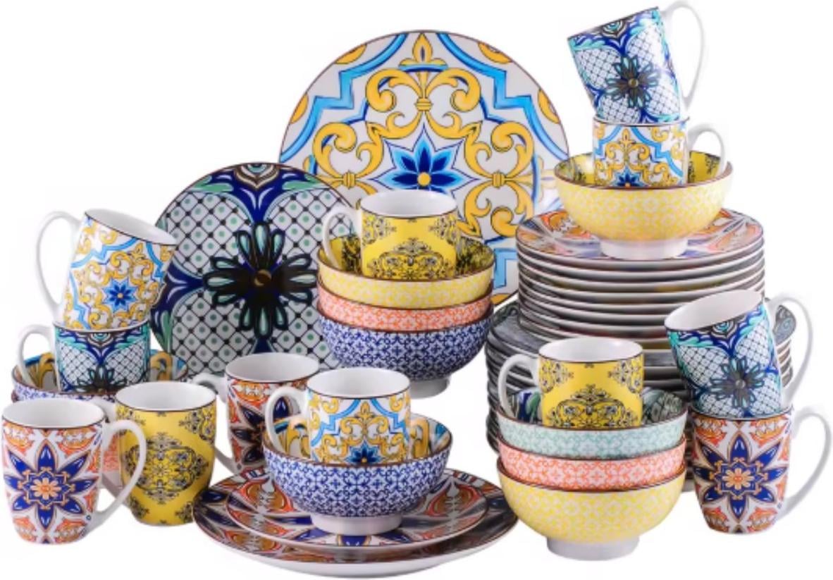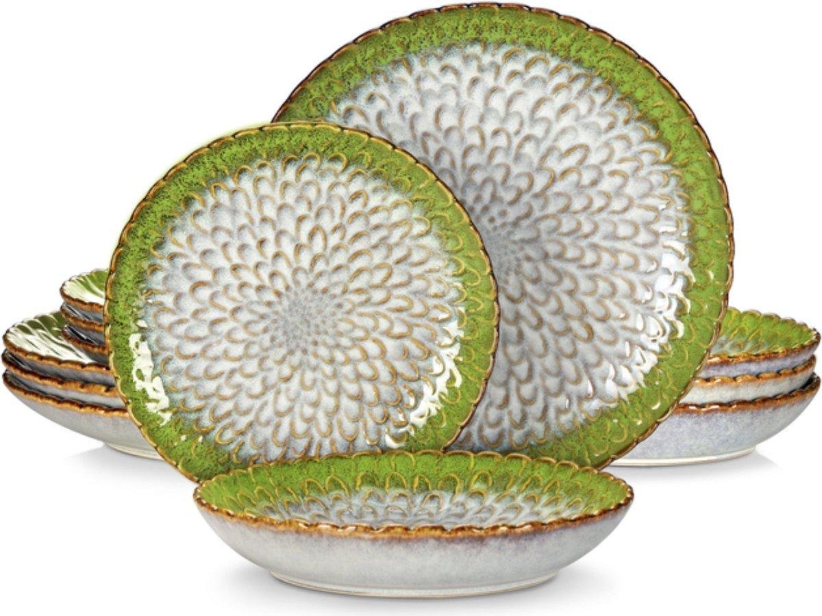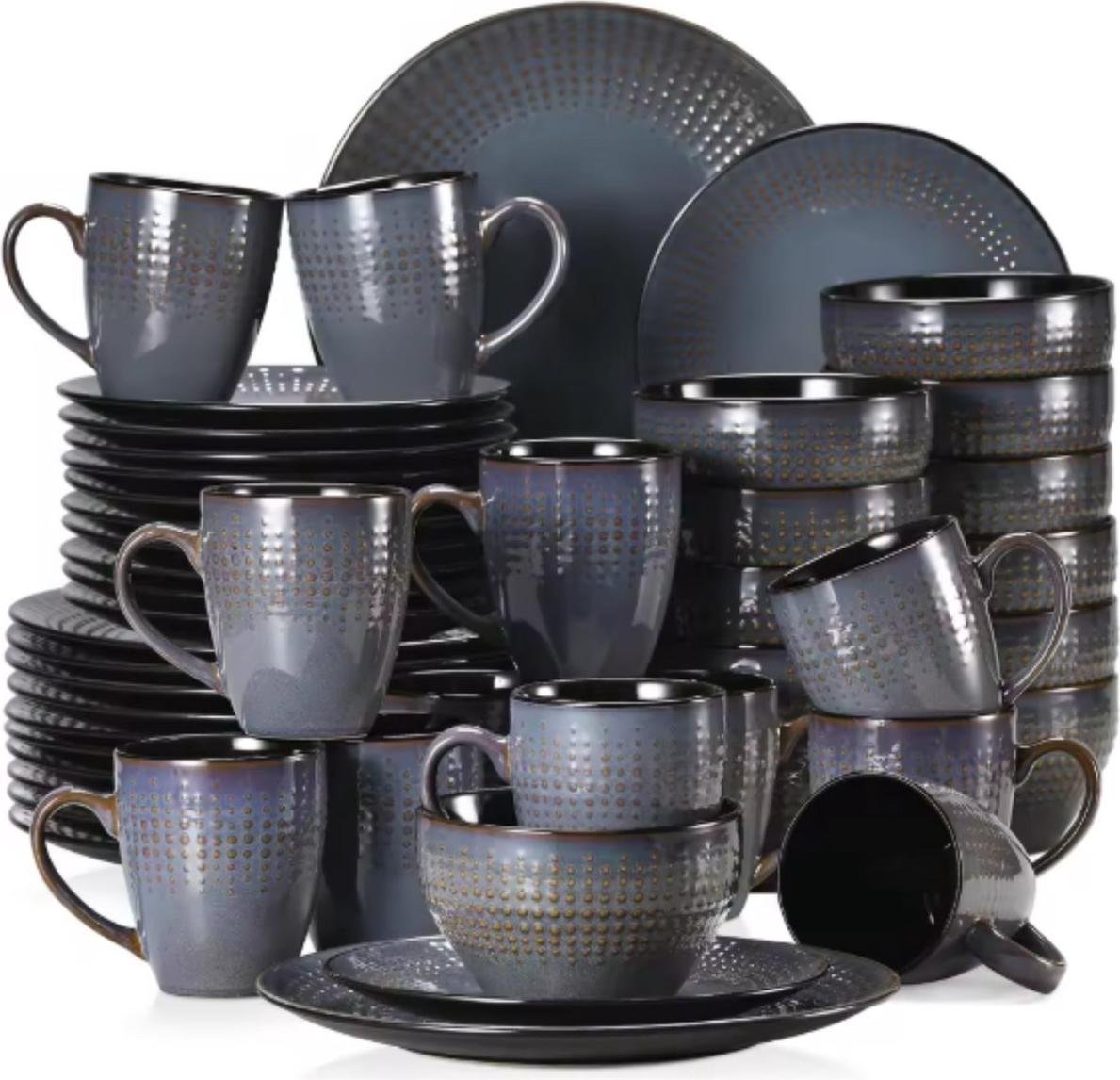 Empress Service - Service de table - 12 personnes - 48 pièces - Céramique - Bleu - Petites assiettes