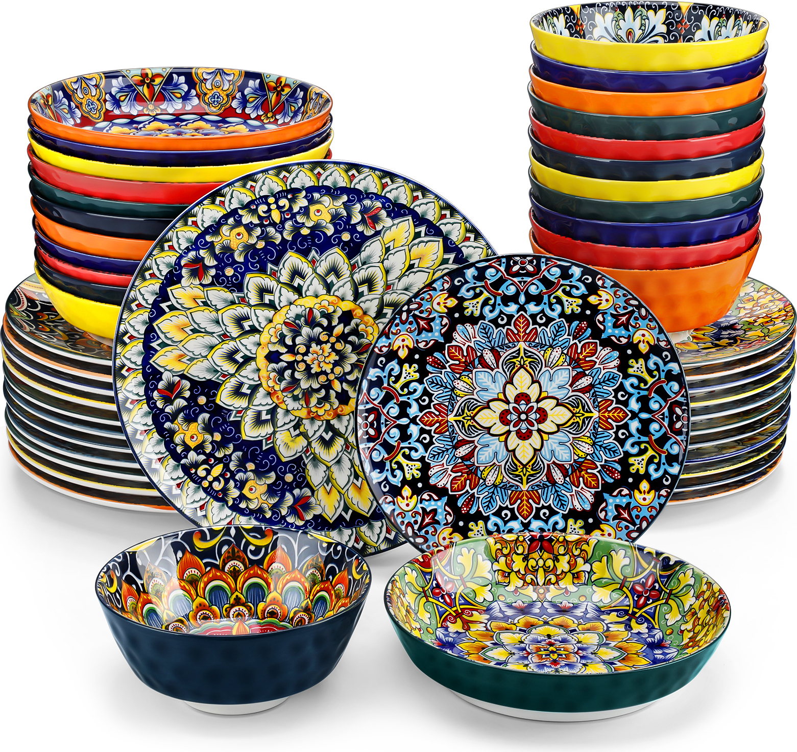 Service de table pour 12 personnes, 36 pièces service combiné en porcelaine, set de vaisselle avec assiettes à manger, assiettes à soupe et bols, style bohème