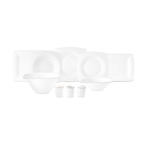 MALACASA Série ELISA 36pcs Assiettes Carrée Service de Table en Porcelaine pour 12 Personnes avec Assiettes Plates, Assiette Creuses et Assiette à Dessert, Service de Vaisselle Blanche