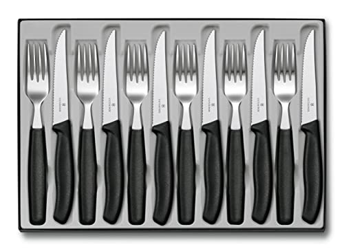 Victorinox Classic Ménagère, 12 Pièces Set de Couverts, pour 6 Personnes, 6 X Couteaux à Steak, 6 X Fourchet tes de Table, Noir