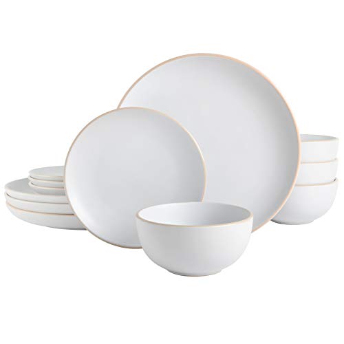 Gibson Home Rockaway Service de table rond en grès pour 4 personnes (lot de 12), blanc