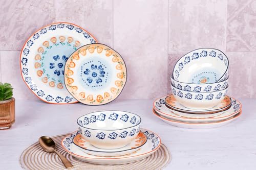 BJORN Service de vaisselle Les Essentiels NAPOLI 12 pièces – Service de table 4 personnes en porcelaine blanche peinte à la main – Assiettes et bols pour usage quotidien