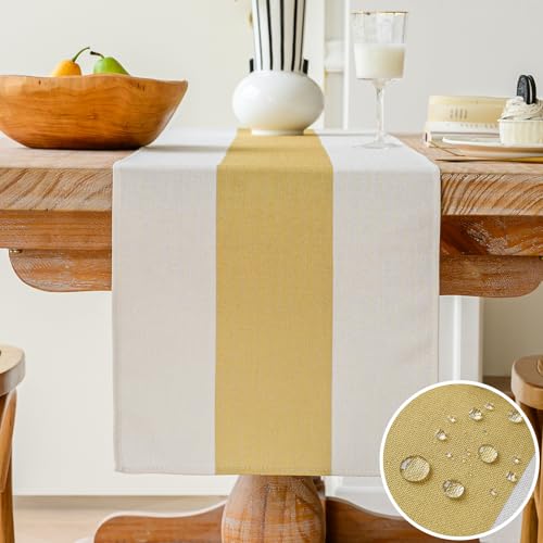 Vorysum Chemin de Table Moderne Imperméable Nappe de Table Décoration de Table pour Table à Manger Table Basse Restaurant Fête Dîner Vacances Cuisine(33x120cm A-Jaune)