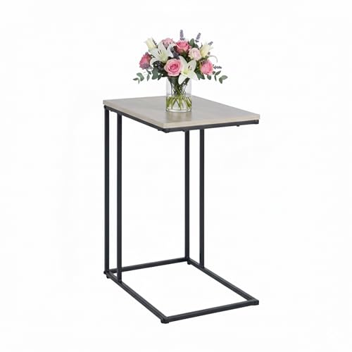 Table d'appoint Relaxdays, H x L x P : 64 x 50 x 35 cm, MDF, métal, Forme en C, Table Basse à Glisser, Noir/Nature