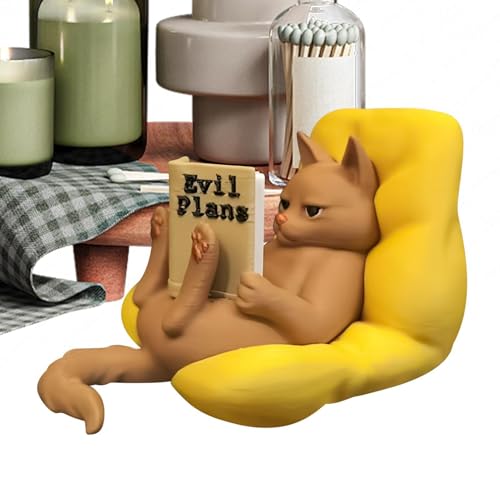 Figurine Mignonne de Chat Paresseux Lisant un Livre - Décorations De Statue Animale Minuscule,Ornement Chat Paresseux Lisant sur Meuble | Pour Maison Domicile Bibliothèque Appui Fenêtre Table Chevet A