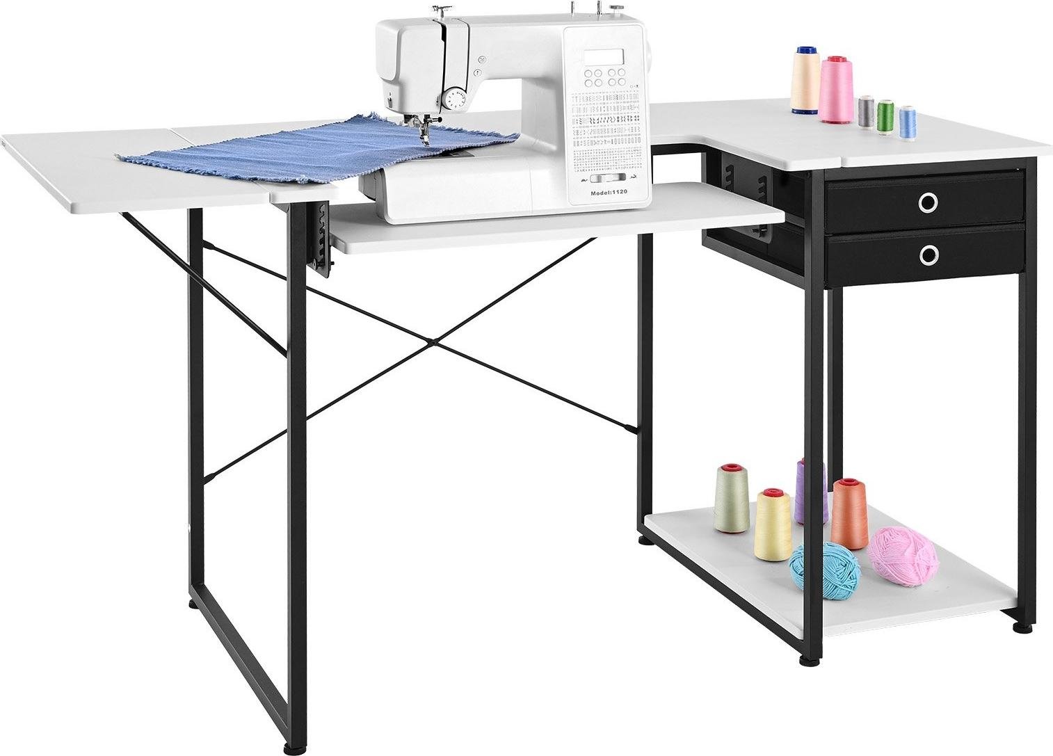 Table à couture - Table pour machine à coudre - Plateau rabattable - Tablette réglable - Structure en acier - Avec tiroir - Peut également servir de bureau pour ordinateur