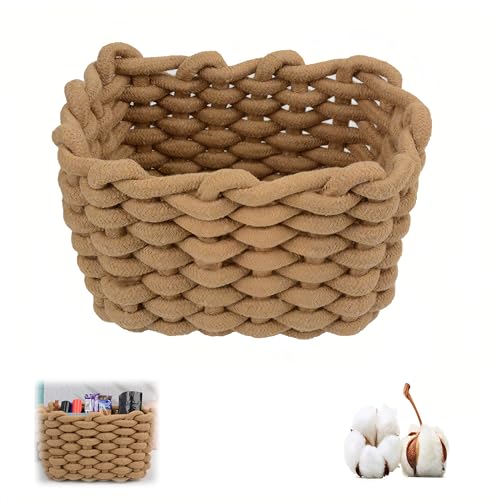 Panier Rangement, Panier de Rangement Salle de Bain, Petit Paniers de Rangement en Corde de Coton Tressé pour Cuisine Chambre, Organisateur Table a Langer (28 x 17 x 11 cm) (Brun, 28 * 17 * 11cm)