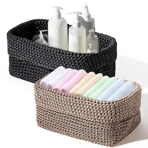 Lot de 2 paniers noirs au crochet - Panier de rangement tissé empilable - Organiseur de salle de bain - Organiseur de table à langer - Petit panier de salle de bain