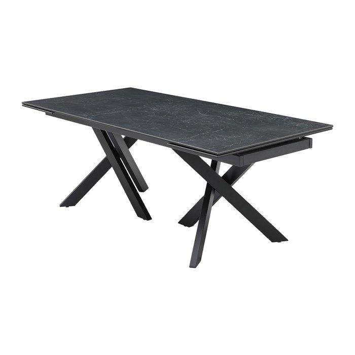 Table à manger extensible 8 à 12 personnes en verre trempé et céramique - Effet marbre noir - MARISO