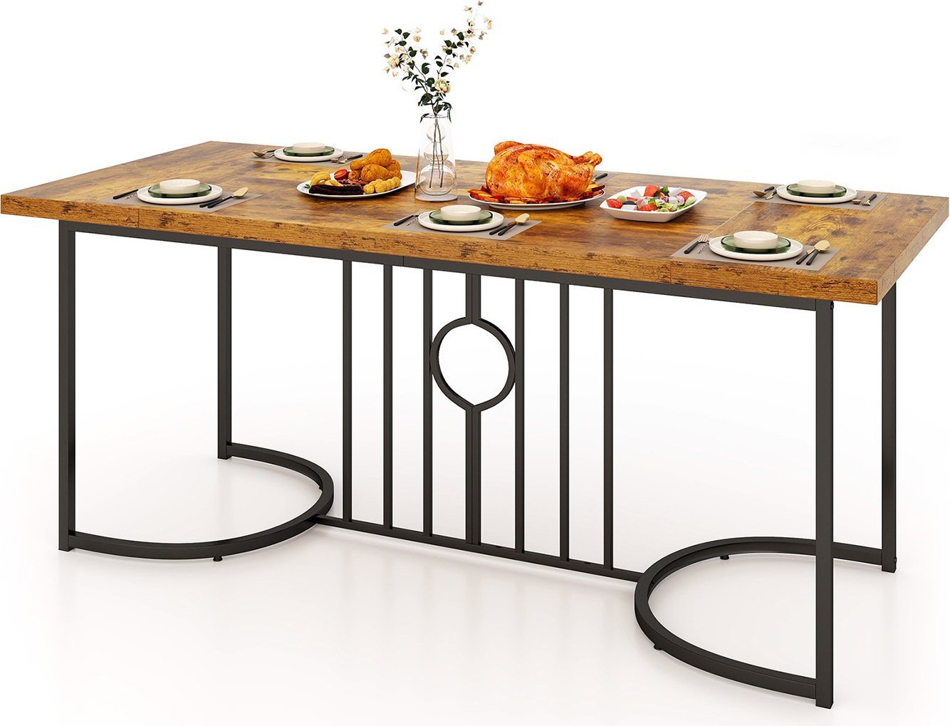 Table de salle à manger COSTWAY, 180 x 79 cm, table de cuisine rectangulaire en bois et métal, jusqu'à 135 kg, table à manger pour 6-8 personnes, grande table marron+noir