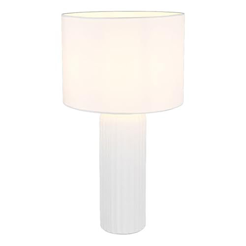 Reality Leuchten R51811031 Blair Lampe de table avec pied en céramique et abat-jour en tissu blanc 1 ampoule E27 non incluse