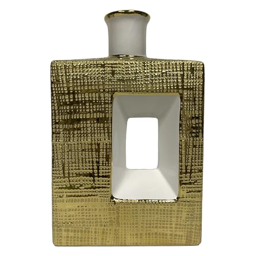 DRW Vase de Table avec Ouverture en céramique dorée 18 x 12 x 31 cm