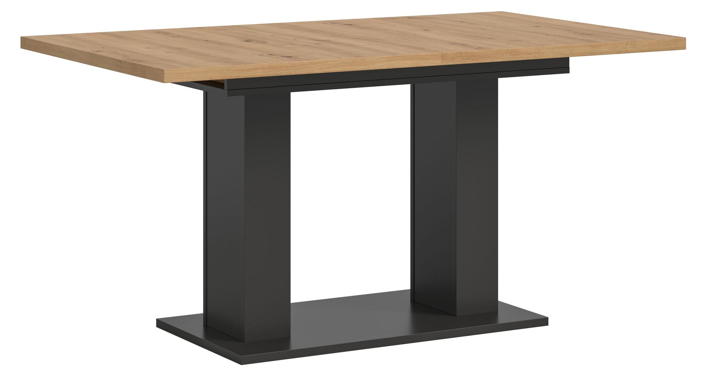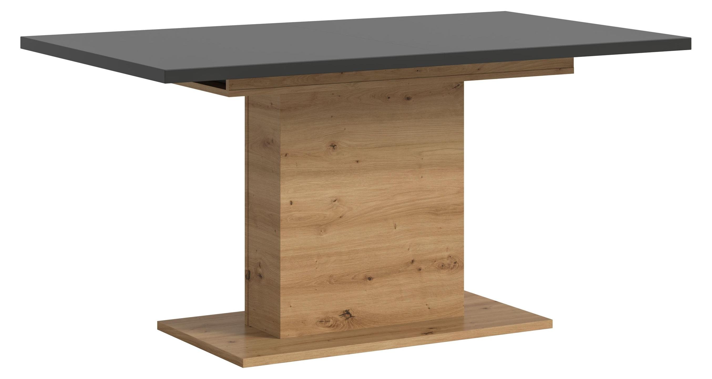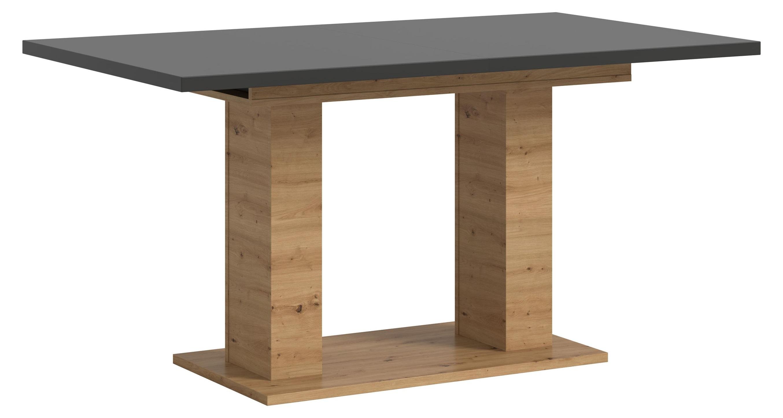 Motion table de salle à manger double colonne 90x150/190 cm avec 1 rallonge gris, chêneReproduction.