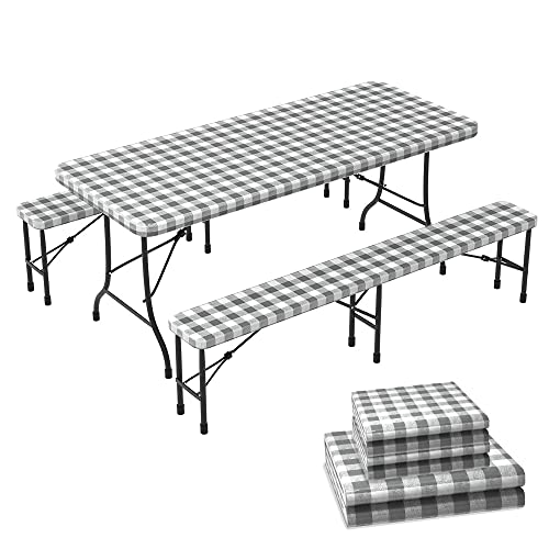 vounot Lot de 3 Nappe en Vinyle Imperméable Anti Tache Nappes de Table et Banc Intérieur Extérieur Couverture de Table Élastique avec Doublure en Flanelle pour Jardin Décoration…