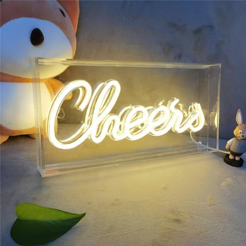 Cheers néon LED Néon Cheers 3D art boîte à lumière Cheers néon adapté pour la décoration de table décoration murale, bar, pub enterrement de vie de garçon Cheers néon alimenté par USB (blanc chaud)