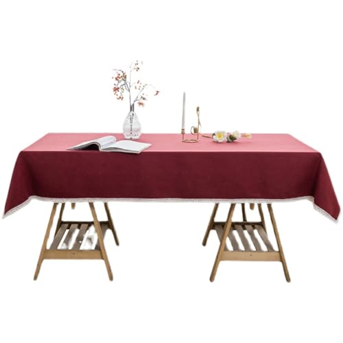 BHOMTY Nappe rectangulaire en Coton et Lin pour Table à Manger, Table Basse, Bureau Lavable en Machine Rouge 120 x 120 cm