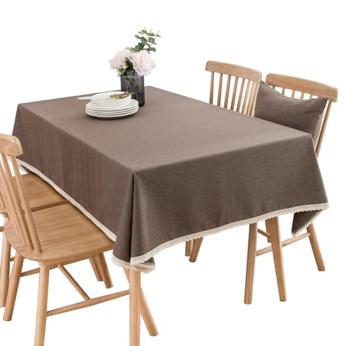 BHOMTY Nappe rectangulaire en Coton et Lin pour Table à Manger, Table Basse, Bureau Lavable en Machine Marron Foncé 120 x 120 cm