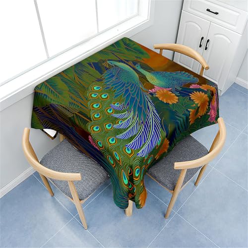 Treer Nappe Carrée, Paon de Style Chinois Nappe de Table Anti Taches, Nappe de Jardin Lavable, Nappe en Polyester Essuyable, pour Table Basse, Picnic, Décoration, Mariage (Paon 3,120x120cm)