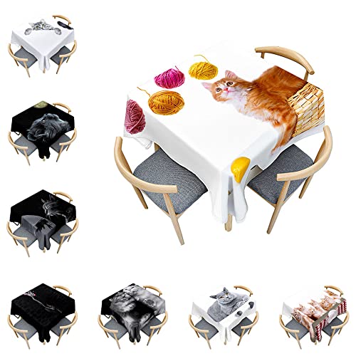 Odot Chat Nappe Carrée Anti Tache, Impression 3D de Chat Imperméable Anti Taches Lavable Rectangulaire Nappe pour Fête Decoration Ménage Table Basse Jardin Picnic (120x120cm,Chat Boule de Poils)