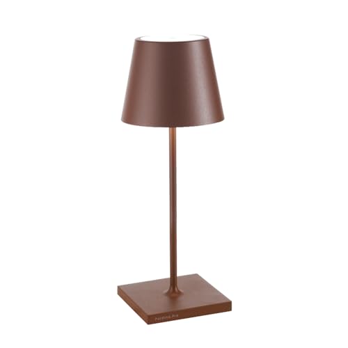 Zafferano, Poldina Pro Mini, Lampe de Table Rechargeable et Sans Fil avec Contrôle Tactile, Utilisable également comme Lampe d'Extérieur, Dimmer 2200-3000 K, Hauteur 30 cm, Couleur Corten