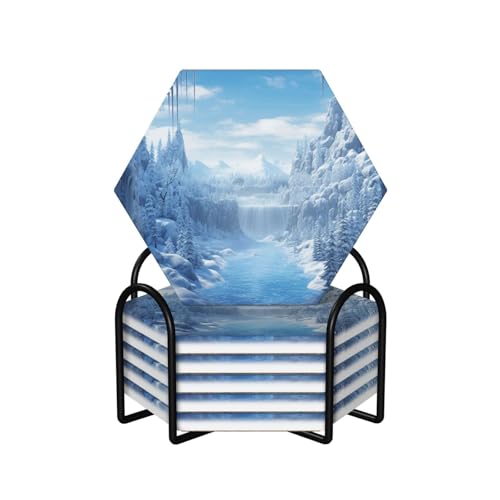 Lot de 6 Dessous de Verre hexagonaux en marbre Noir avec Support, absorbants, Modernes, en céramique, Meilleurs Dessous de Verre en Pierre, décoration de Table Basse, Amusants, pour Bar, Bureau