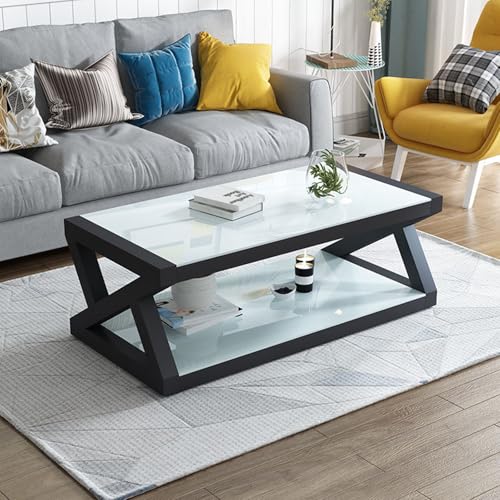 Table basse en verre, design moderne à deux niveaux, forme rectangulaire, style plateau, parfaite pour le salon, dimensions 119,4 x 61 x 45,7 cm (L x l x H)