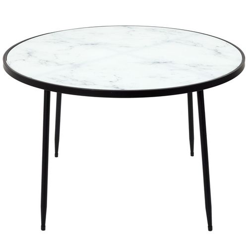 TOILINUX Table basse ronde effet marbre en verre et métal - L.80 cm x H. 45 cm - Blanc Taille unique Blanc
