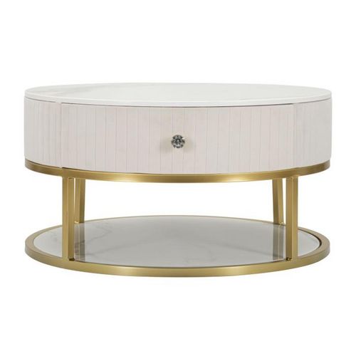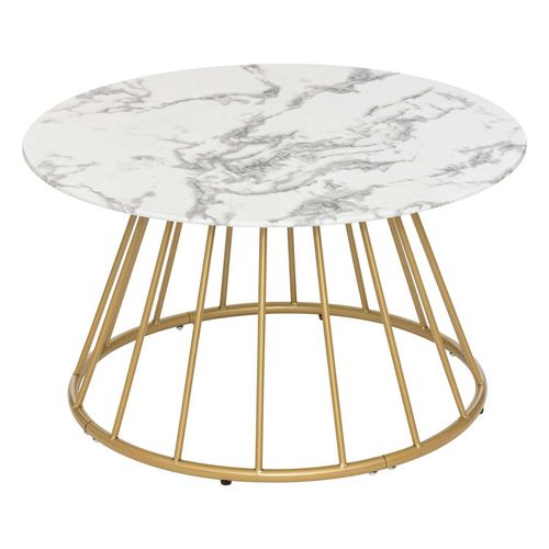 Table Basse Effet Marbre Sharon 75cm Blanc & Or