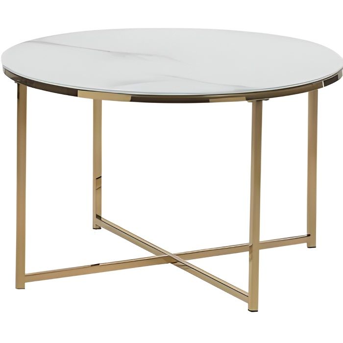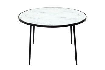 Macabane Table basse ronde Blanc 50x50cm plateau effet marbre piètement métal DALY