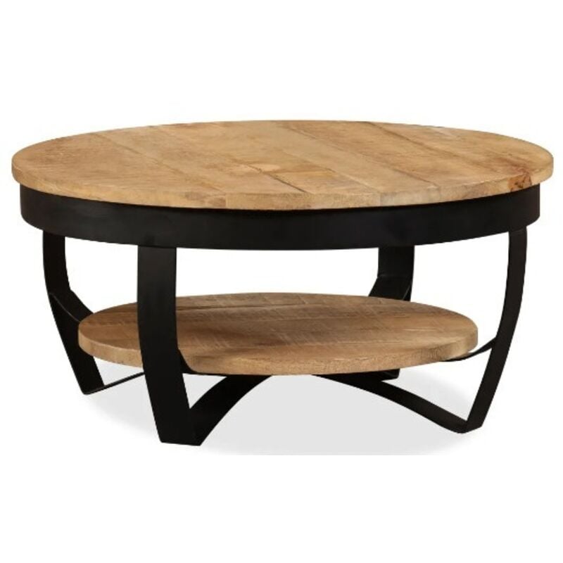 Macabane Table basse ronde 80x80cm en rotin noir plateau amovible