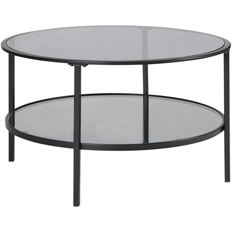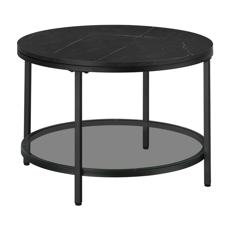 Beliani - Table Basse Moderne en Verre Trempé 80 cm Tablette en Fer Noire Tellaka