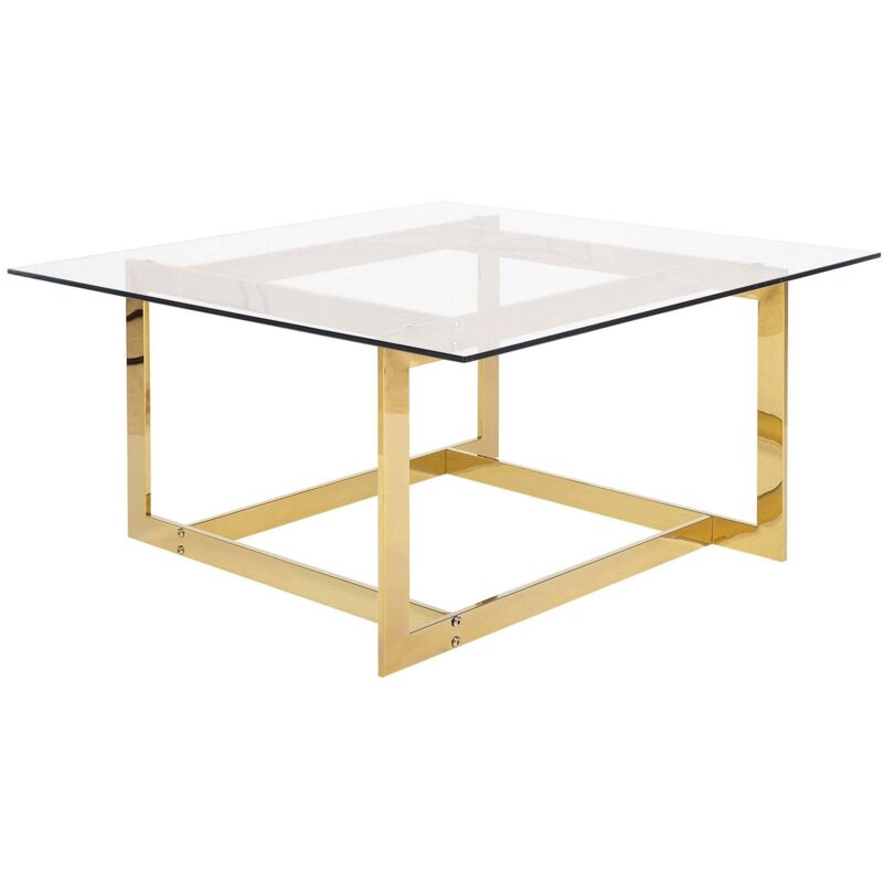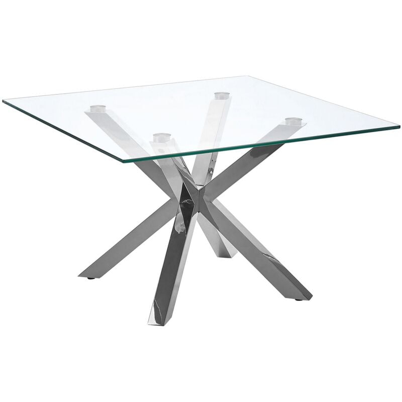 Beliani – Table basse carrée 70 x 70 cm – Plateau en verre trempé – Pieds en acier inox poli – Style moderne pour salon élégant