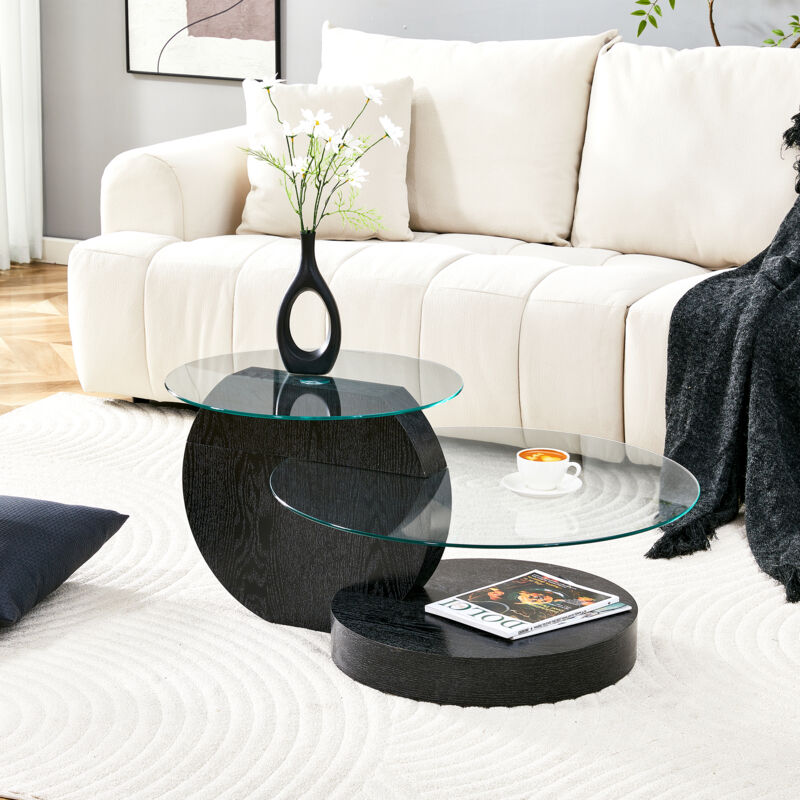 Table basse moderne ovale L 120 cm en verre bois noir