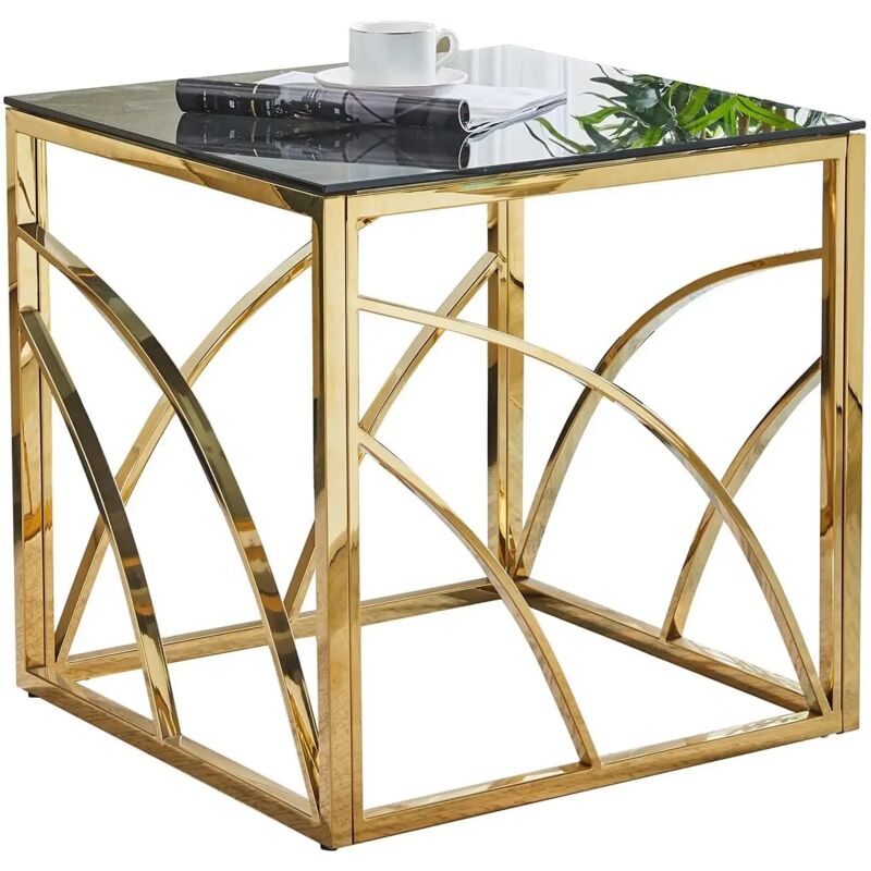Table basse carrée moderne en verre trempé de 8 mm avec cadre doré - acier inoxydable plaqué or - design minimaliste et multifonction - 55x55x55 cm