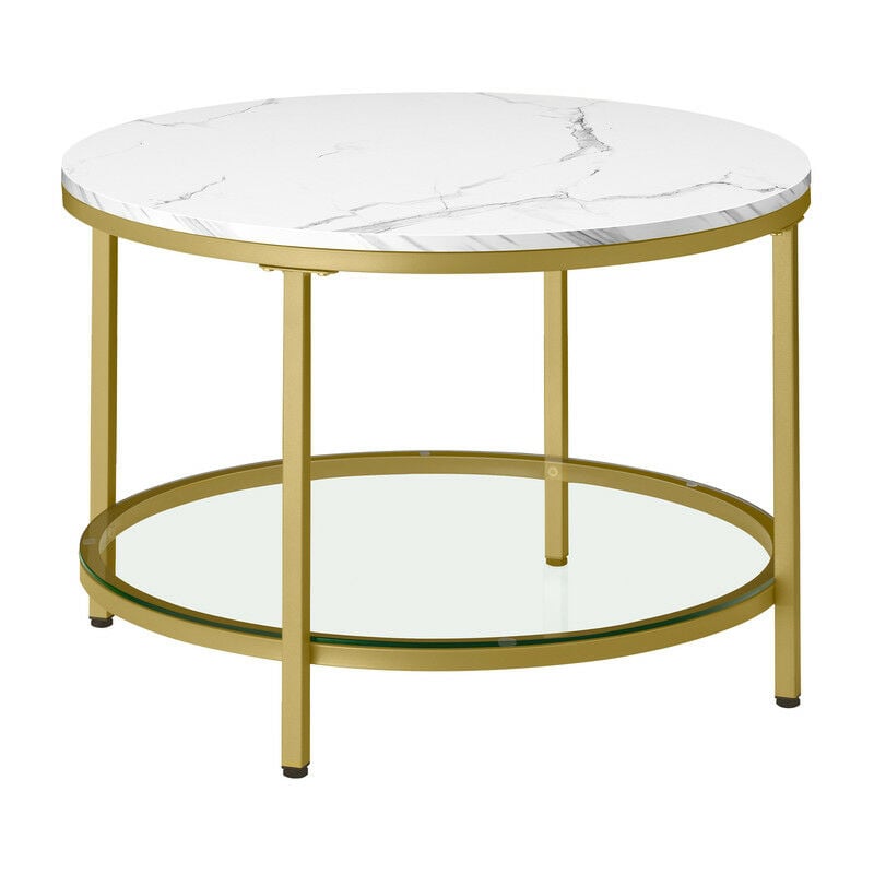 Beliani - Table Basse Ronde avec Plateau en Verre Imitation Marbre Blanc et Structure en Métal Doré pour Salon Moderne et Glamour