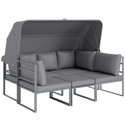 Outsunny Salon de Jardin extérieur 4 pièces modulaire avec canapé 3 Places, 2 fauteuils et Table Basse en Verre trempé, mobilier de Jardin avec Coussins Inclus pour terrasse ou véranda, Gris