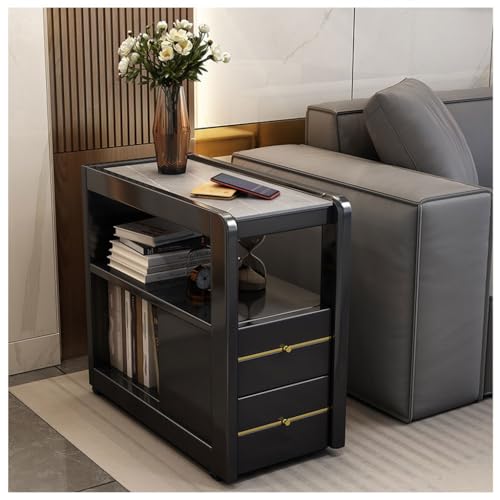 Table d'appoint rustique en bois massif avec dessus de table basse amovible, meuble de canapé mobile, mini table d'angle en dalle de roche pour le salon