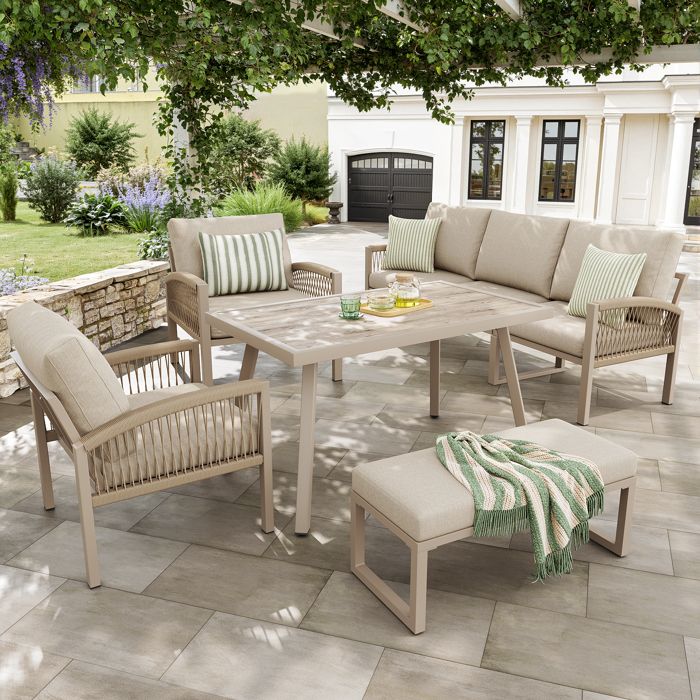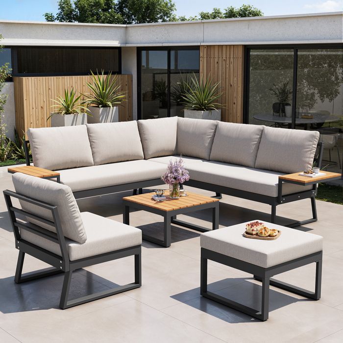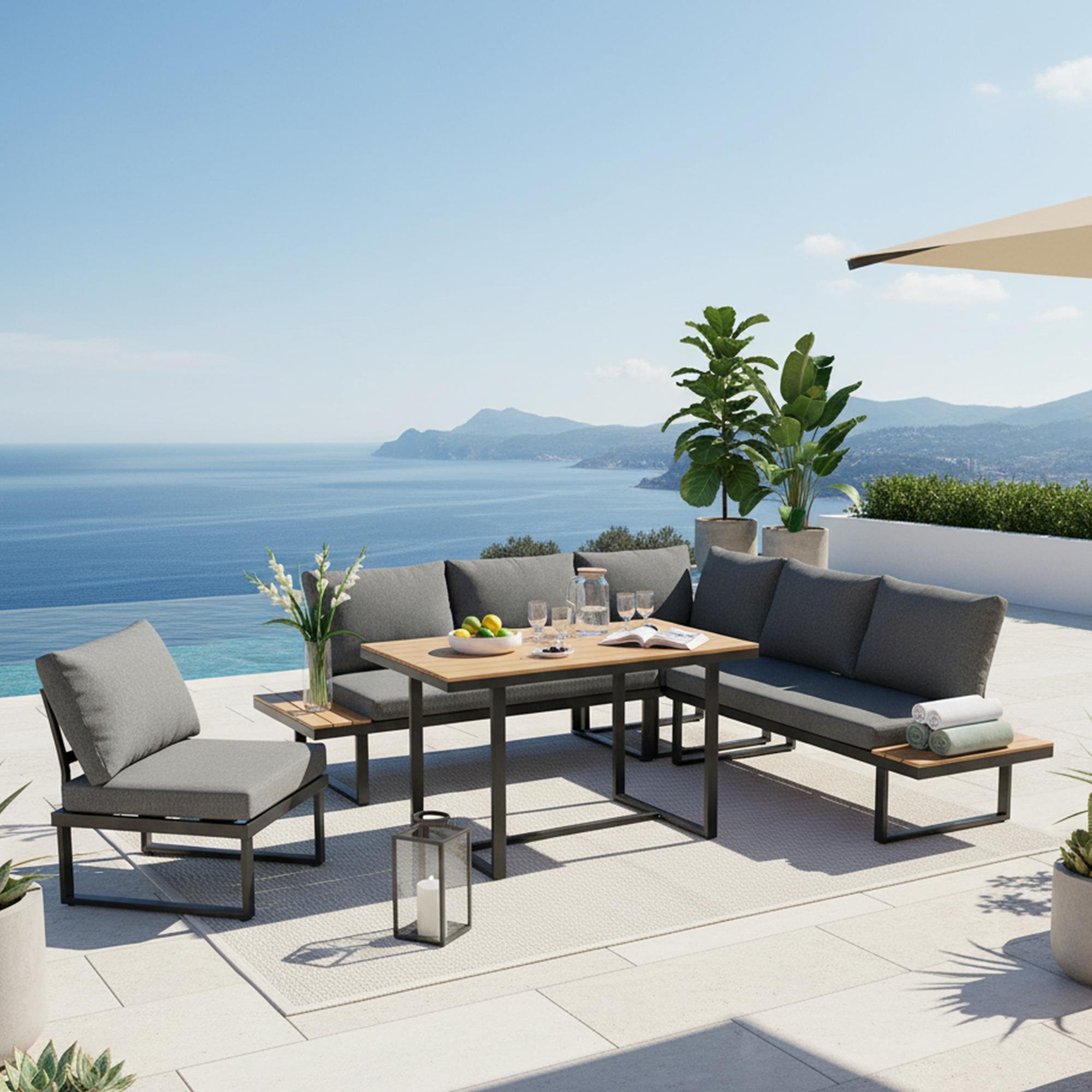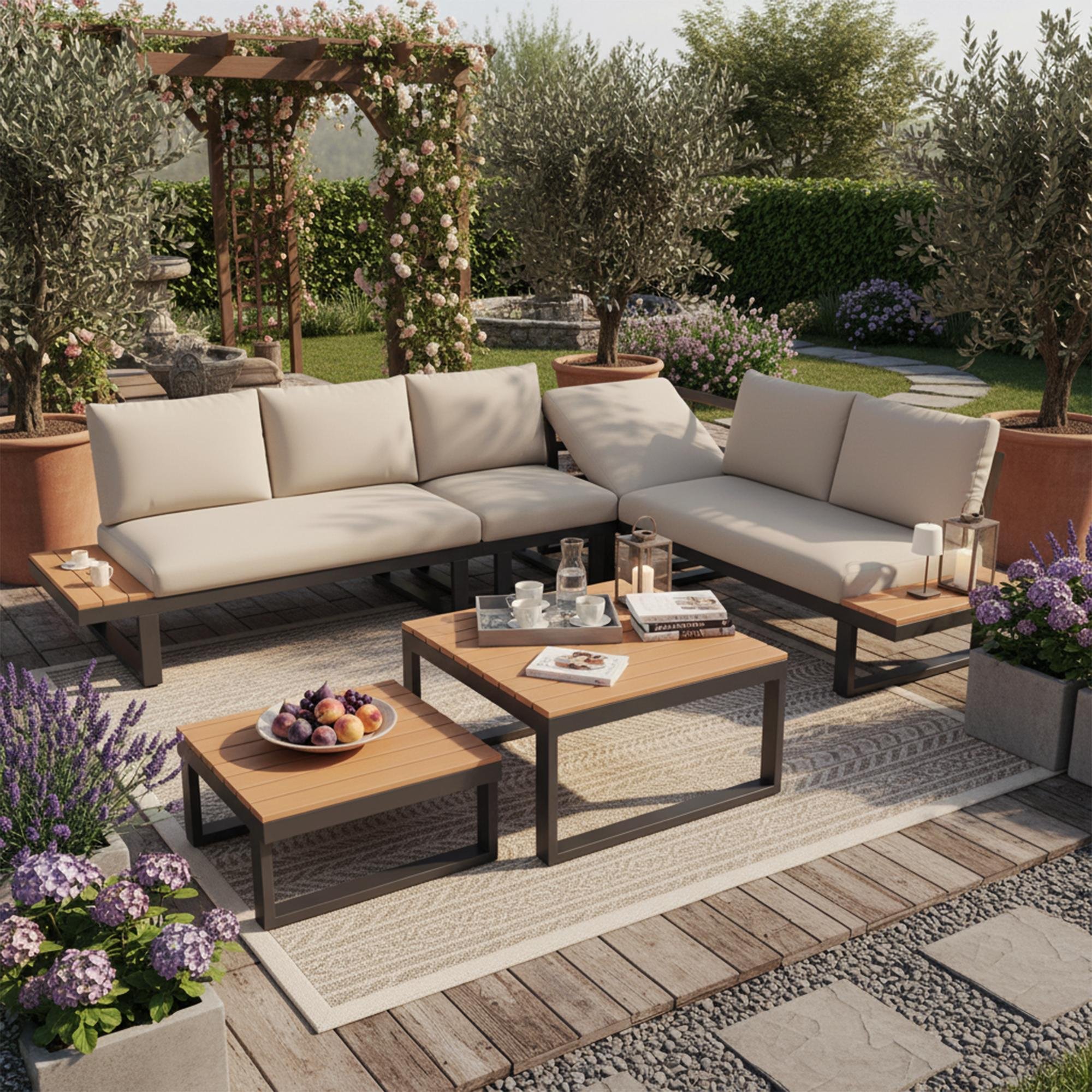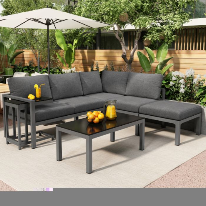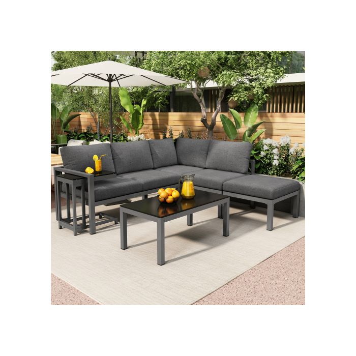 Salon de jardin avec canapé dangle coussins table basse Dossier réglable pour 5 personnes Métal Gris