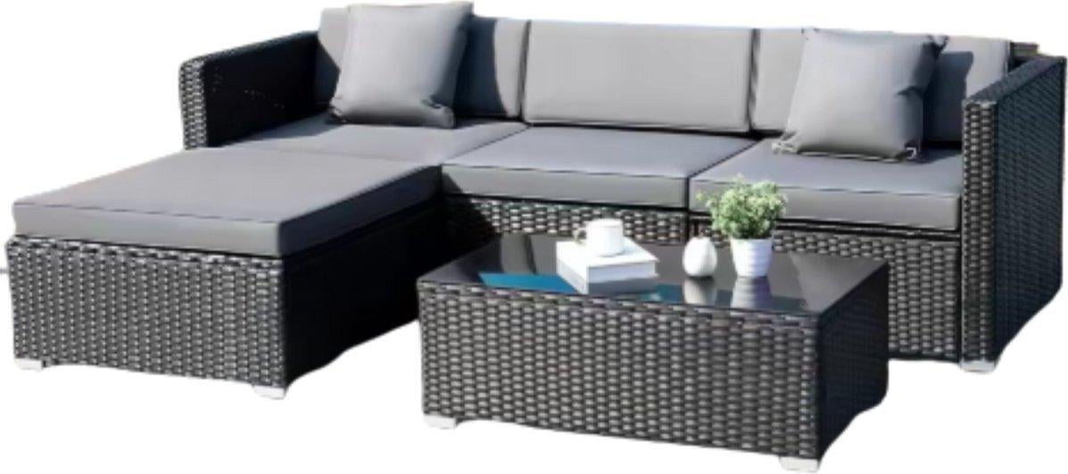 Poly-Rattan Lounge Set de jardin pour 4 personnes - Set de jardin 5 pièces avec canapé d'angle, table basse et coussins - Résistant aux intempéries - Noir