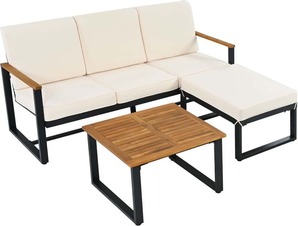 AIORBER Ensemble de meubles de jardin, salon d'angle, canapé + table basse + tabouret de pied, tube d'acier galvanisé,plateau de table en acacia, pour jardins, piscines, beige