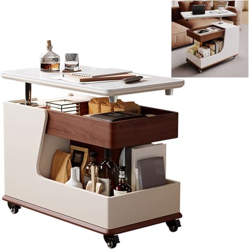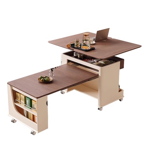 Table basse à plateau relevable pour salon – 2 en 1 avec roulettes, étagère ouverte – Table d'appoint carrée polyvalente en bois qui se transforme en table de salle à manger