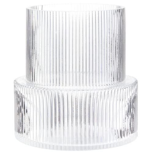 KAYLETIN Vase Rond en Verre, vases à Fleurs pour Tulipes, vases en Verre nervuré pour Fleurs, Joli Vase Transparent pour Salon, Table à Manger, Bureau, Table Basse, cheminée, Mariage, 16 cm