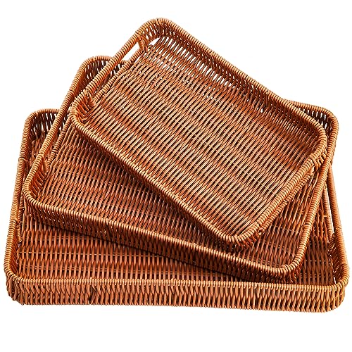 Yarlung Lot de 3 paniers tissés avec poignées, paniers à Pain rectangulaires en polyosier pour Fruits, légumes, Petit-déjeuner, Boissons, collations, Table Basse à Manger, 3 Tailles